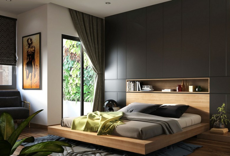 让床头的收纳与床体融为一体,这样的方式,既显简洁,还有很强的设计范,如果卧室面积不大,这样设计方式简直太棒了。