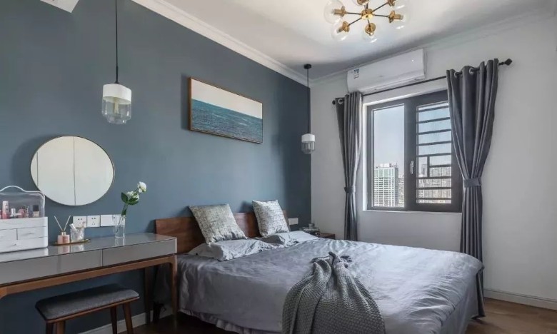 今天推荐的是103㎡现代风格装修,现代是整个设计的基调,注重时尚元素与质朴感的融合,将生活的精致与优雅注入空间。色调上本案将蓝、胡桃木色和黑白灰色搭配,释放直抵人心的静谧和优雅。背景墙上的艺术装饰品,带来视觉上的错落有致。