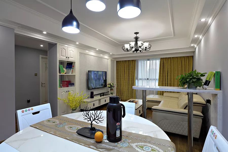 餐厅和客厅之间用吧台作为隔断,也是给家里增添了一些情调,这些细节的设计,就是提升家里颜值的重用部分哦。