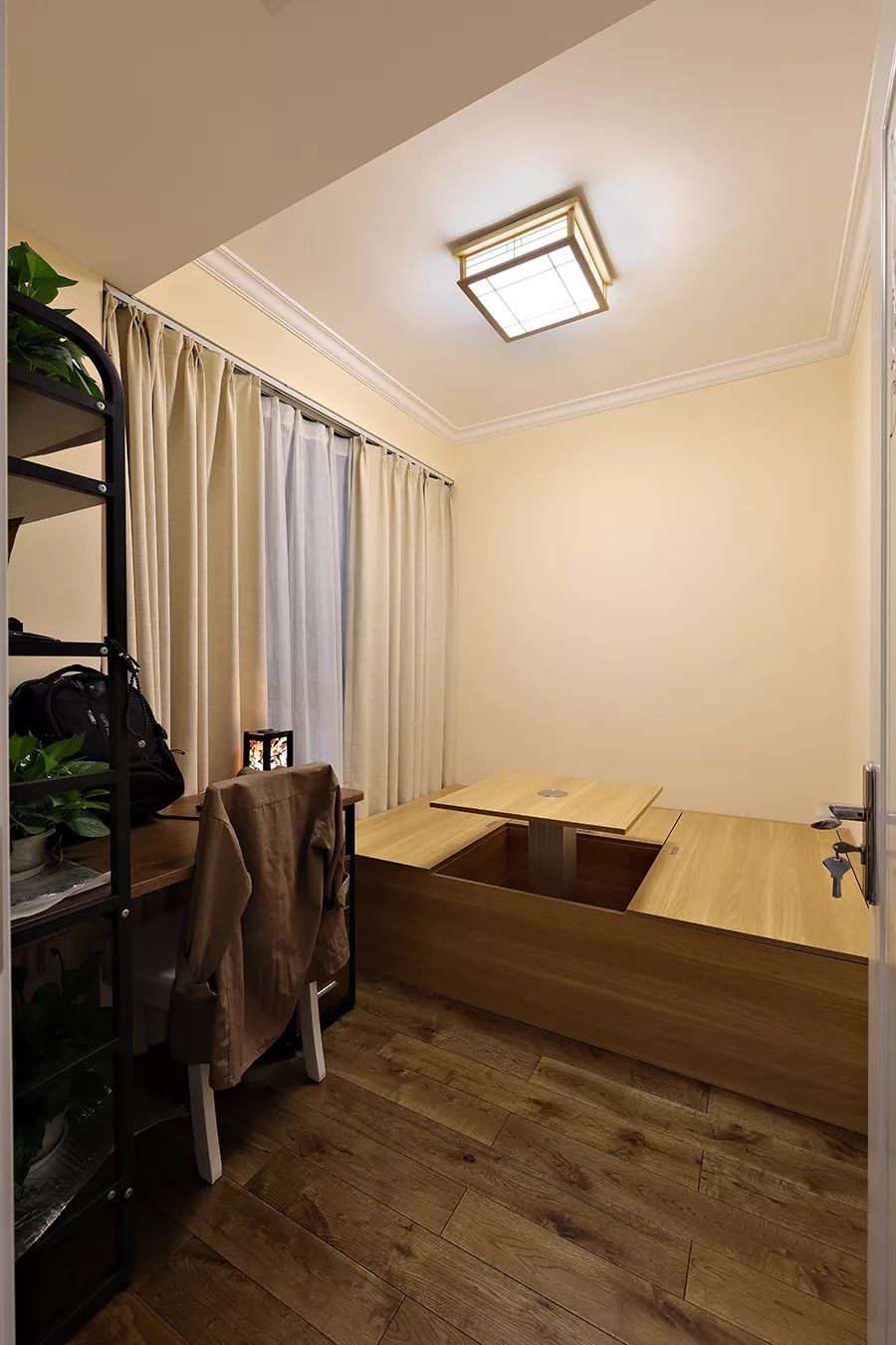 书房兼客房是做了榻榻米的设计,中间有个升降桌,也方便邀请朋友来玩的时候,多个休闲区域。