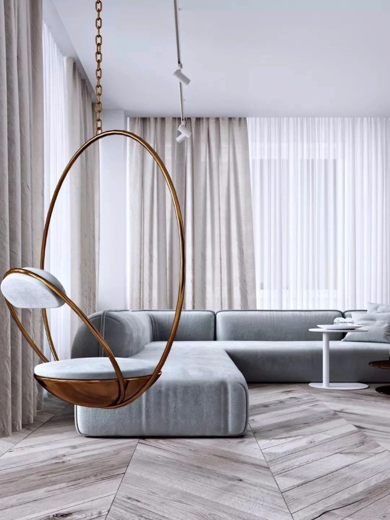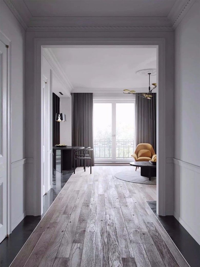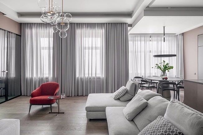 一般情况下,窗帘的尺寸是要依着窗子的大小来决定的,但是为了不影响到悬挂窗帘后的整体美观度,我们要遵循一个“万能法则”: