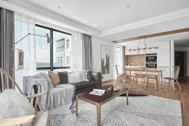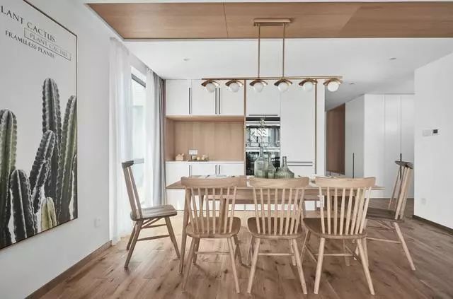 客餐厅一体的设计,与窗外的视野和采光融合的非常好,窗里窗外都是景。