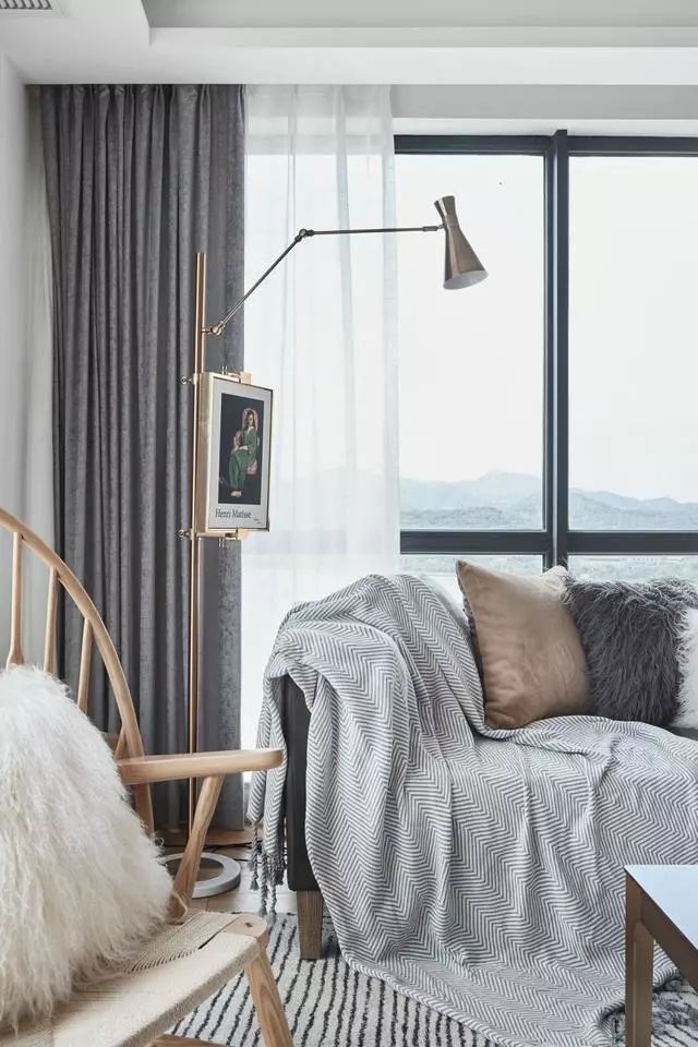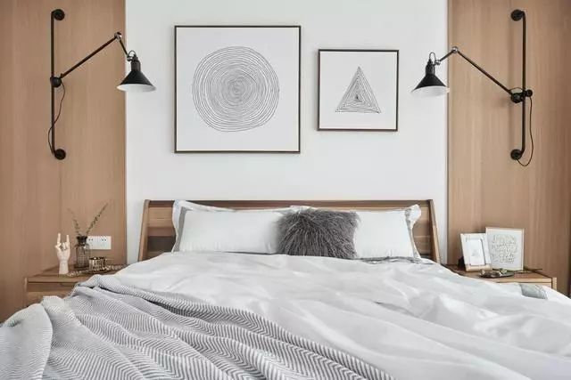 床头的黑色铁艺壁灯,方便业主晚上夜读所用,同时也给自然舒适的空间增添了几分文艺感。