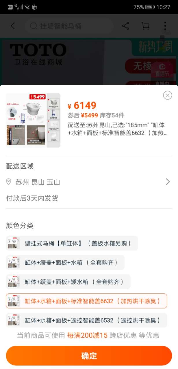 在淘宝上看了Toto的,价格还可以,去实体店看看实物,价格差不多还是想在实体店定