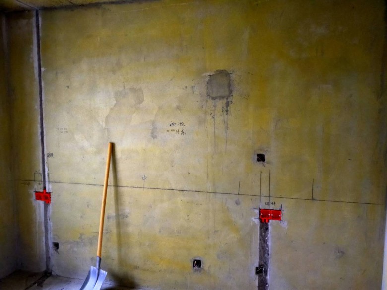 由于周末不让施工,停工了几天,敲墙一结束水电立马进场,墙地面刷的德高的,跟其他牌子不一样,是同色,墙固目的是防潮,地固是固化水泥防止水泥灰尘也起到防潮作用,尤其家里使用实木地板的适合。