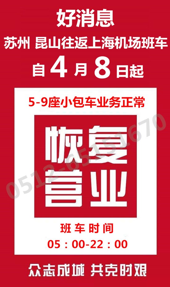 昆山往返上海虹桥、浦东机场班车4月8日恢复,天天发车,微信关注“