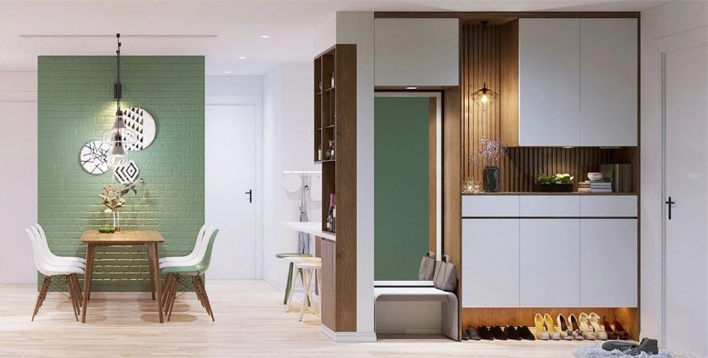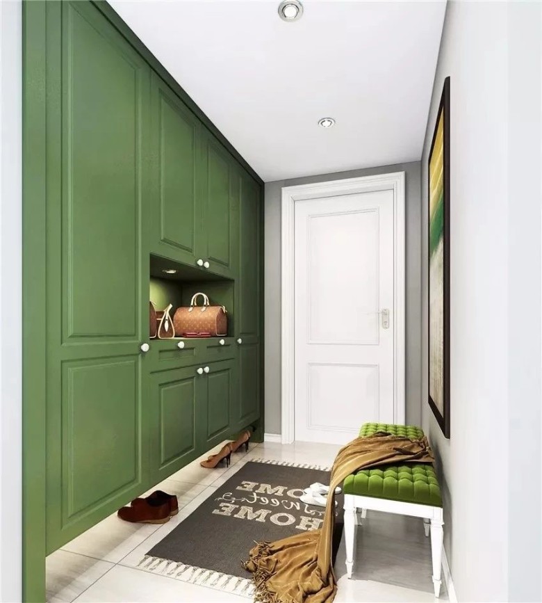 用下面的空间来收纳经常穿的鞋子,既不用弯腰,也不用打开柜门把鞋放进去。这样既解决了鞋子的收纳问题,也能保持门厅的整洁性。