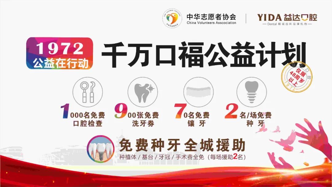 如:全程招募正畸形象官有机会享0元矫正,牙冠修复等其他诊疗项目也有额外公益援助。