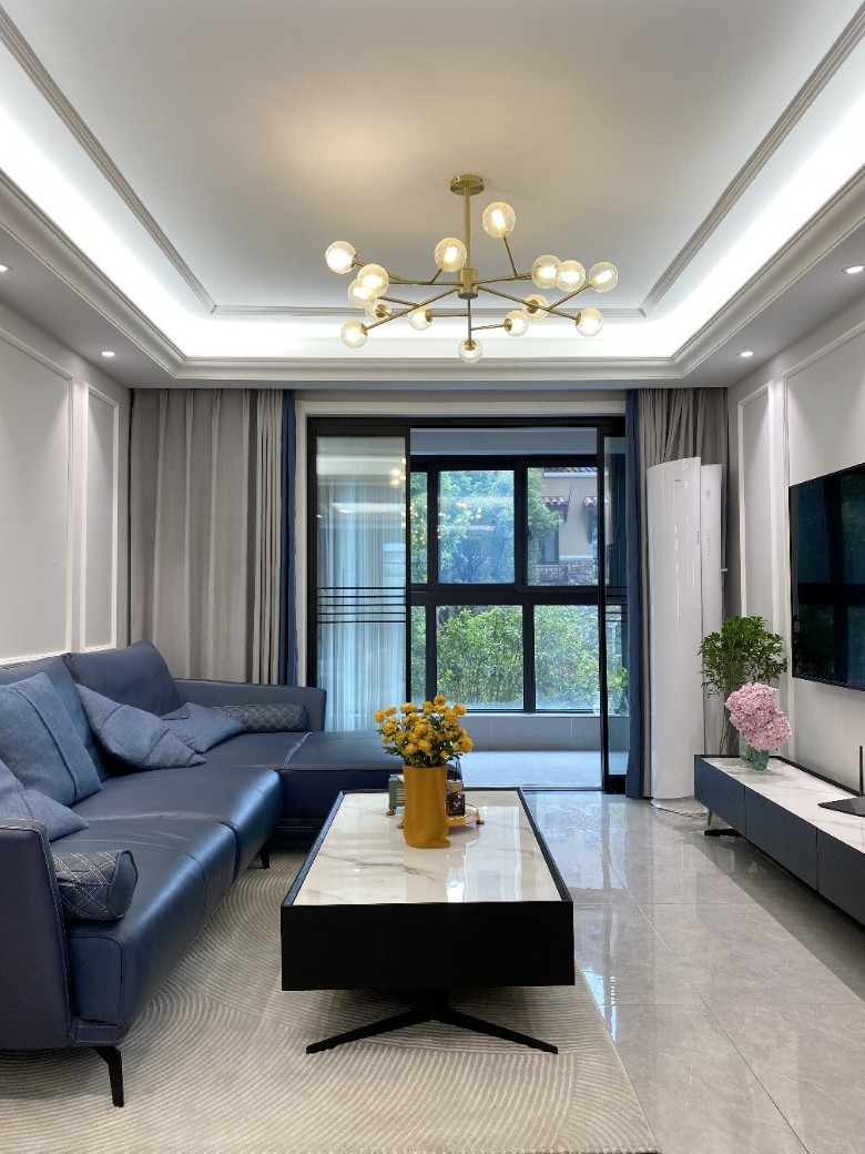 灯具装饰非常重要,灯具的颜色形状要与空间搭配。如下:客厅灯选的是15头的分子吊灯,亮度足够满足照明需求;书房灯是选的吸顶灯,简约干净;阳台则是选了星星吊灯作为照明;卧室灯:9头全铜吊灯;次卧选择简单的吸顶灯。