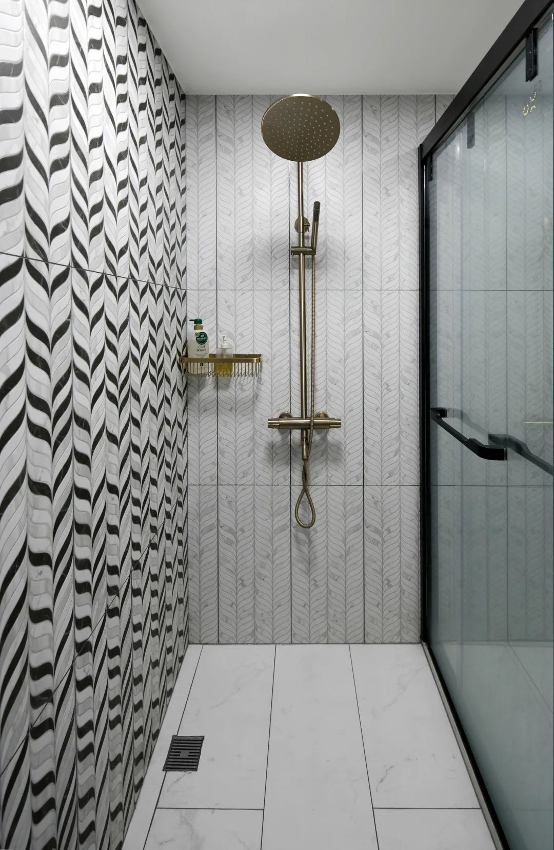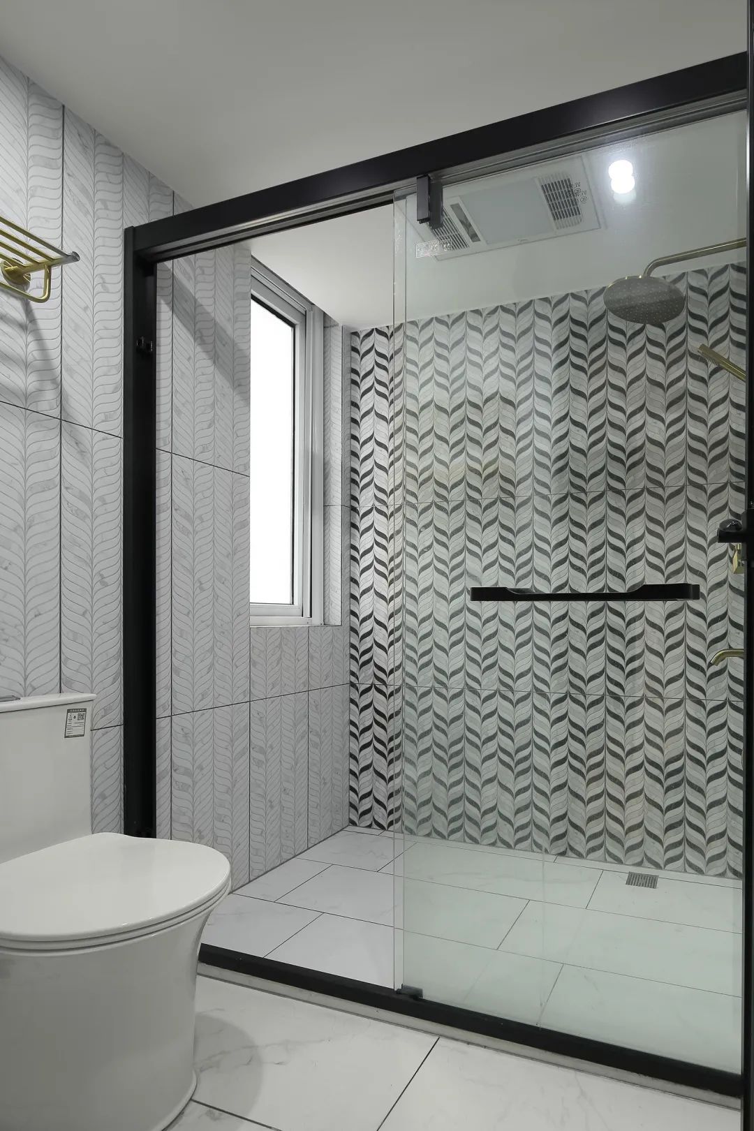 ▲卫生间的墙面贴着独特的枝叶图案的墙砖,搭配雅白的地砖,整个空间显得文艺实用而自然。