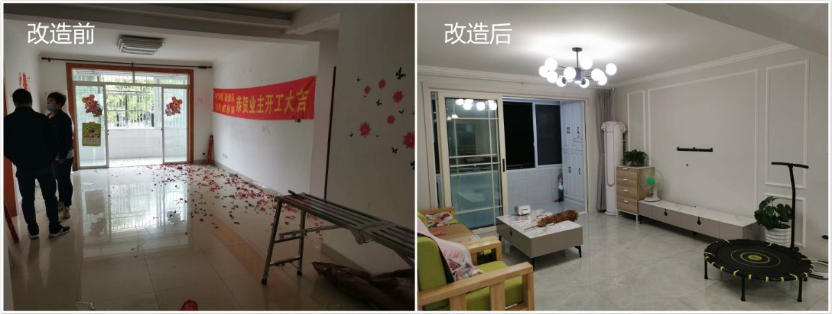 一改之前老式装修的红色装修,整体风格以白色为主,客厅背景墙做了简单的造型,不繁复反到更显简约时尚。阳台一侧也做了橱柜,扩大屋内储物空间。