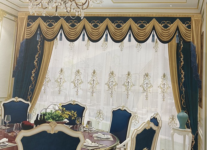 小蜜麻花:第二款窗帘是深蓝色窗帘,主布是蓝色,配布是亚麻色。 (2020-10-14 10:44)
