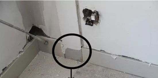 ▲来到卫浴间,参照上图可以发现:卫浴间出水口凹陷进去,日后使用时若是漏水,会直接渗入墙壁中,不仅危害墙体,而且不能及时发现处理。正确的应该是与瓷砖表面保持水平。