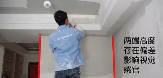 ▲最后在很多细节方面,师傅们也没有考虑到位,比如吊顶两端高度存在偏差,是非常影响美观的。