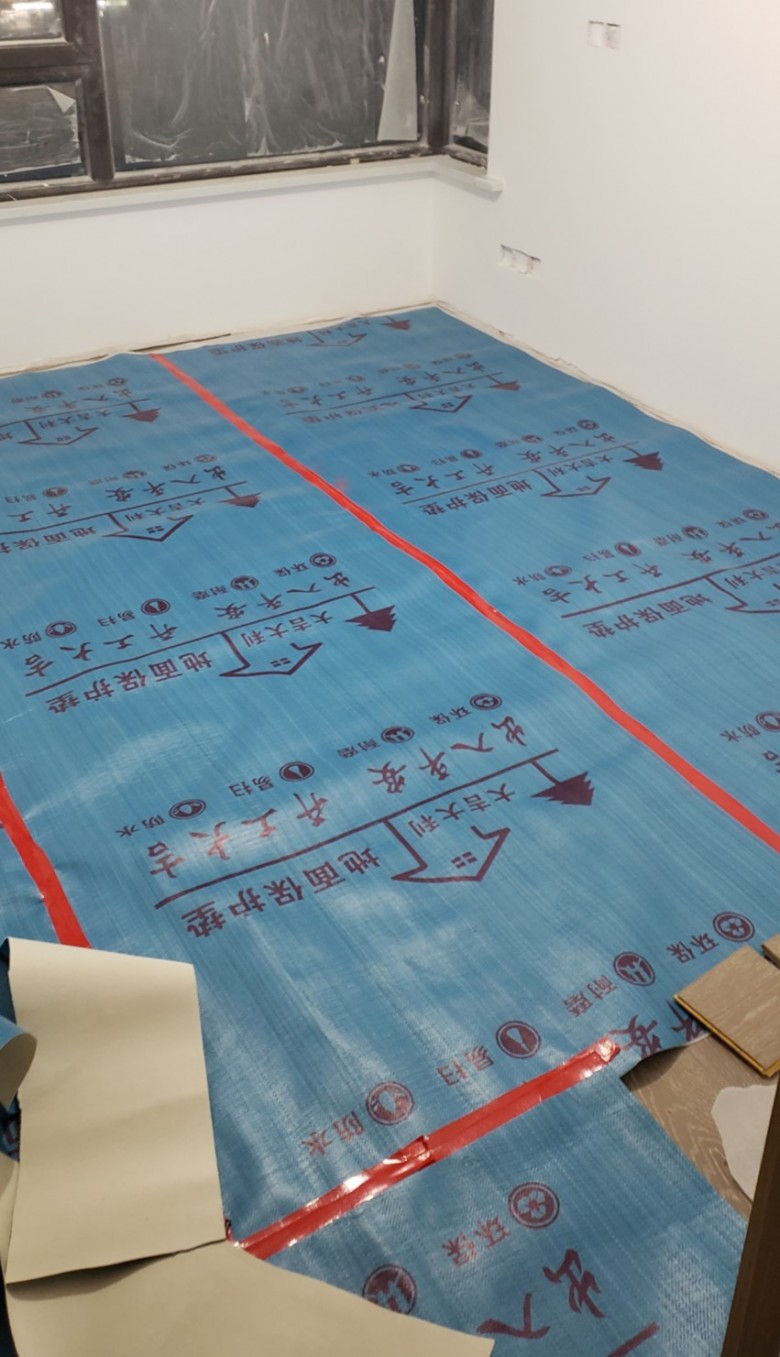 地板保护装修公司说是全屋定制做,我也是搞不懂了,懒得等来回扯不清,自己某宝买了材料,100多块钱,50个平方是不够,最后一个房间差了点,我就多垫点其他软膜吧
