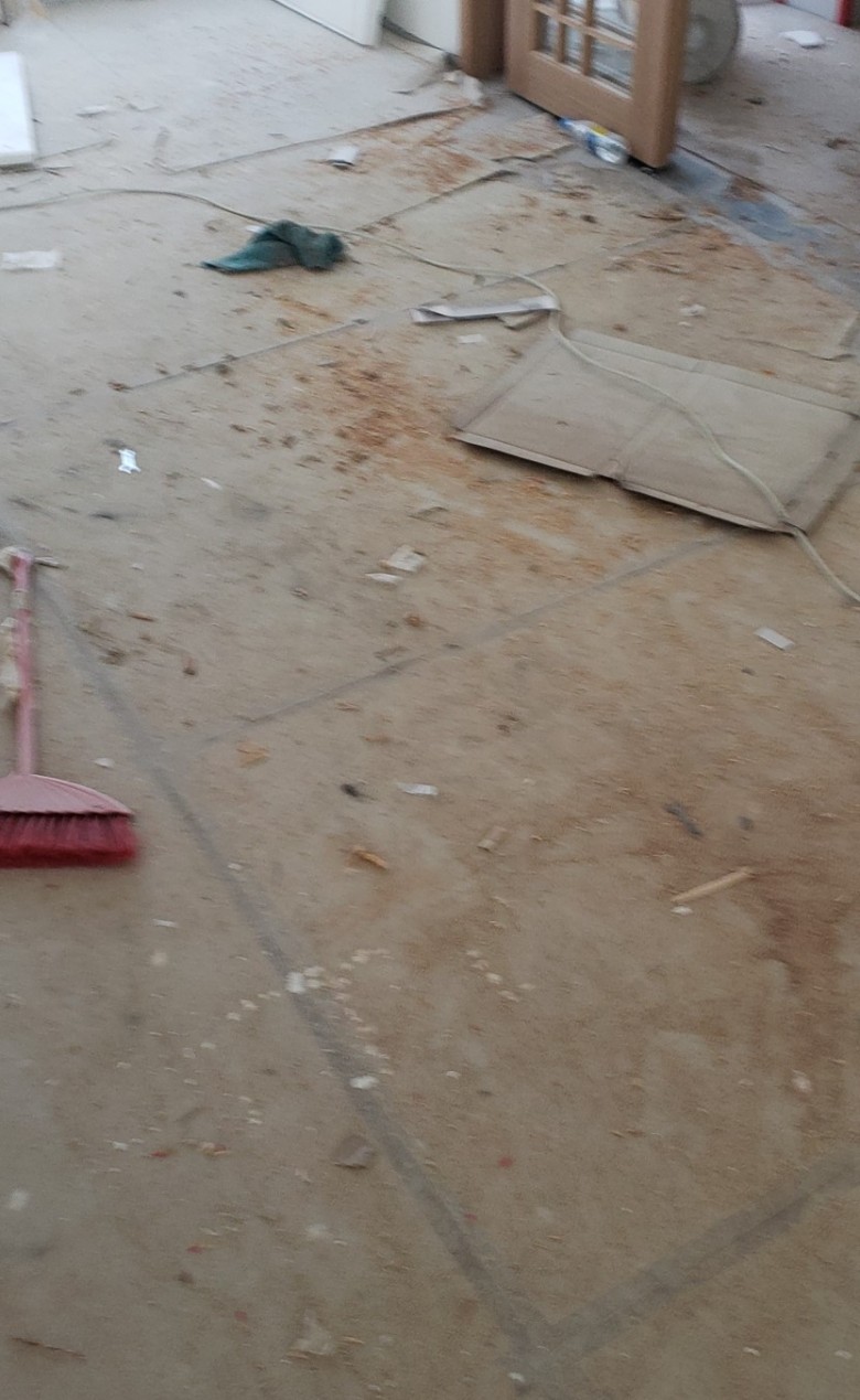 客厅里还是一团糟,这灰和碎屑,还是得扫,吸尘器干不动,下次有空再去要么再铺一层新的好了,实在太脏了,都不想清理了