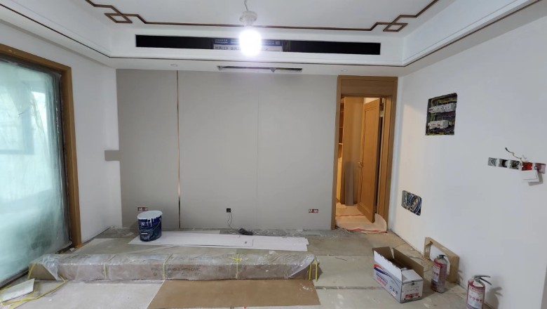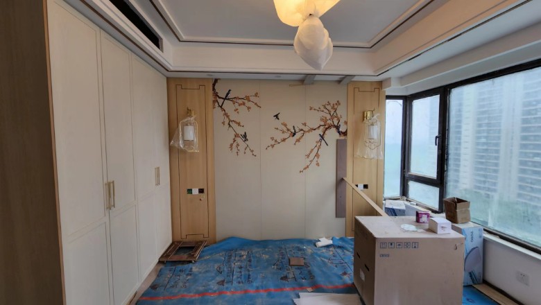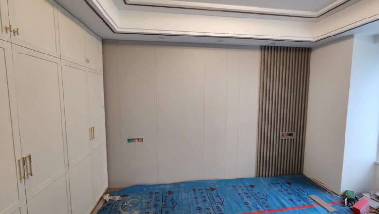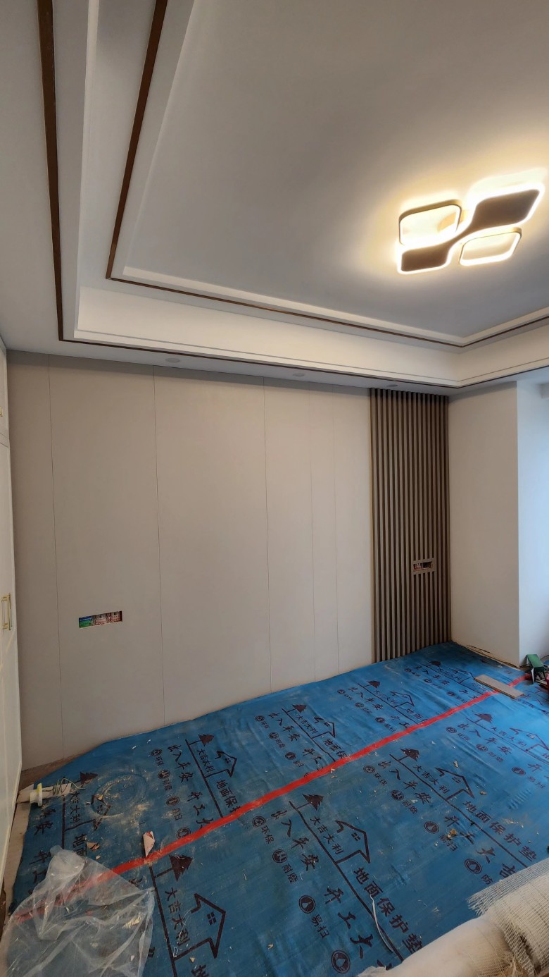 另外2个分体 一个放北面小房间地上书桌旁隐藏,主卧忘记多留一个网口了,只能等床对面桌子买好,放桌上会好看点,暂时先线拖着