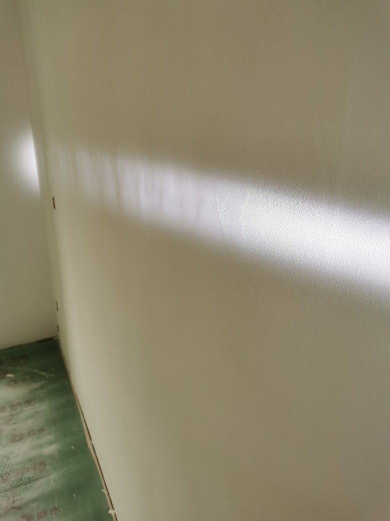 白花花的墙面,看上去非常平整吧,千万不要用手电筒去照射,你就会发现满墙的麻子。