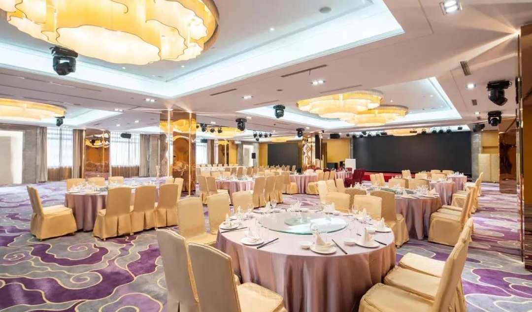 可容纳500余人的大型囍园宴会厅,总面积610㎡,典雅静谧,内敛而简约的设计风格,搭配专业进口音响及视听设备,您值得拥有。