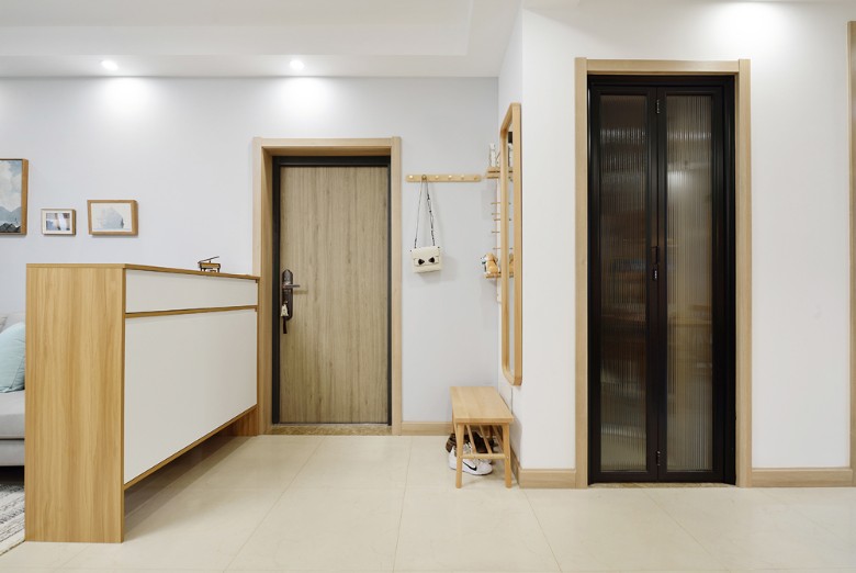 踏入玄关,看得见的是入眼处的白色收纳柜与一副精致的壁画,看不见的是你与我的小时光。