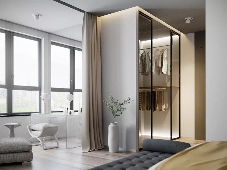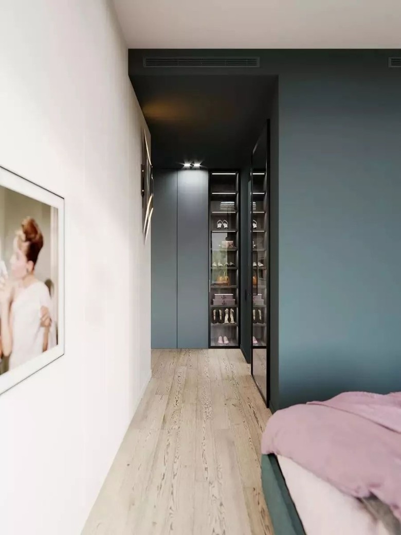 根据不同的空间格局,加入角落的衣橱,也是非常不错的。