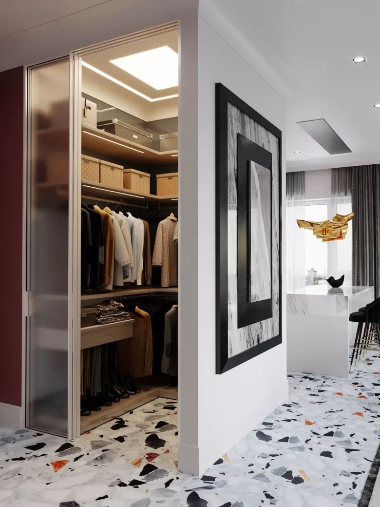 墙面或者拐角的柜子,也可以当做衣帽间。