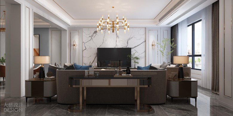 奢,有千万种表现的形式,可以直观张扬,可以内敛低调。大理石墙板呼应下造型感时尚的吊灯,亦或是墙边注入生气的一抹绿意,精简洗练而又落落大方。
