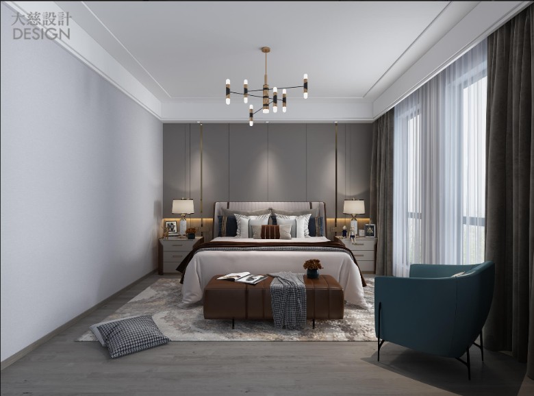 深灰色原本是深沉的,但是巧妙地搭配浅色天花板和地毯,又给房间增添了一些柔和的味道,打造出温暖舒适的睡眠环境。