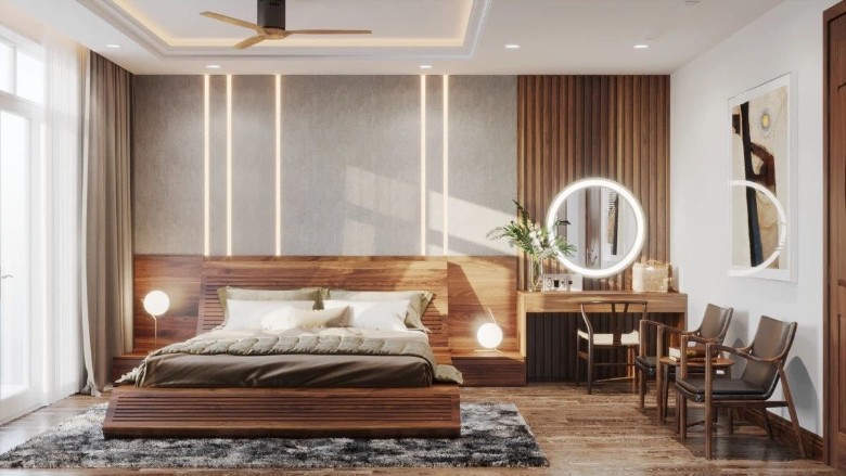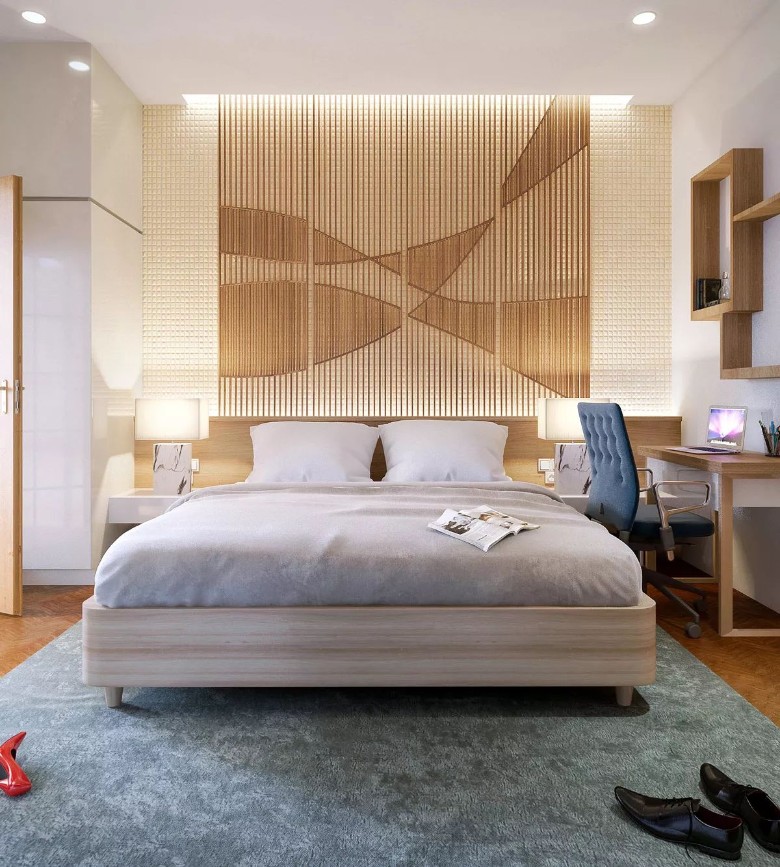 卧室墙面用大理石,浅浅的淡雅色调与丰富的肌理,完美的融合,硬朗中又不失柔和。