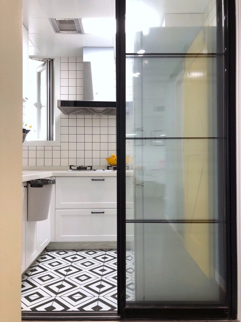 厨房许多家庭都选择了推拉门,但是用上不耐脏的木色和白色,稍有一点油污就会非常明显。