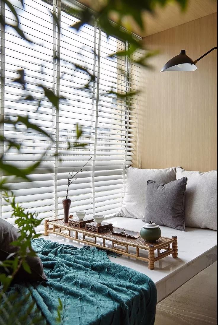 如果阳台有自带的飘窗,利用木板或者其他软垫装饰一下,就变成了一个超级舒适的观景台,既能看风景,也能修身养性。