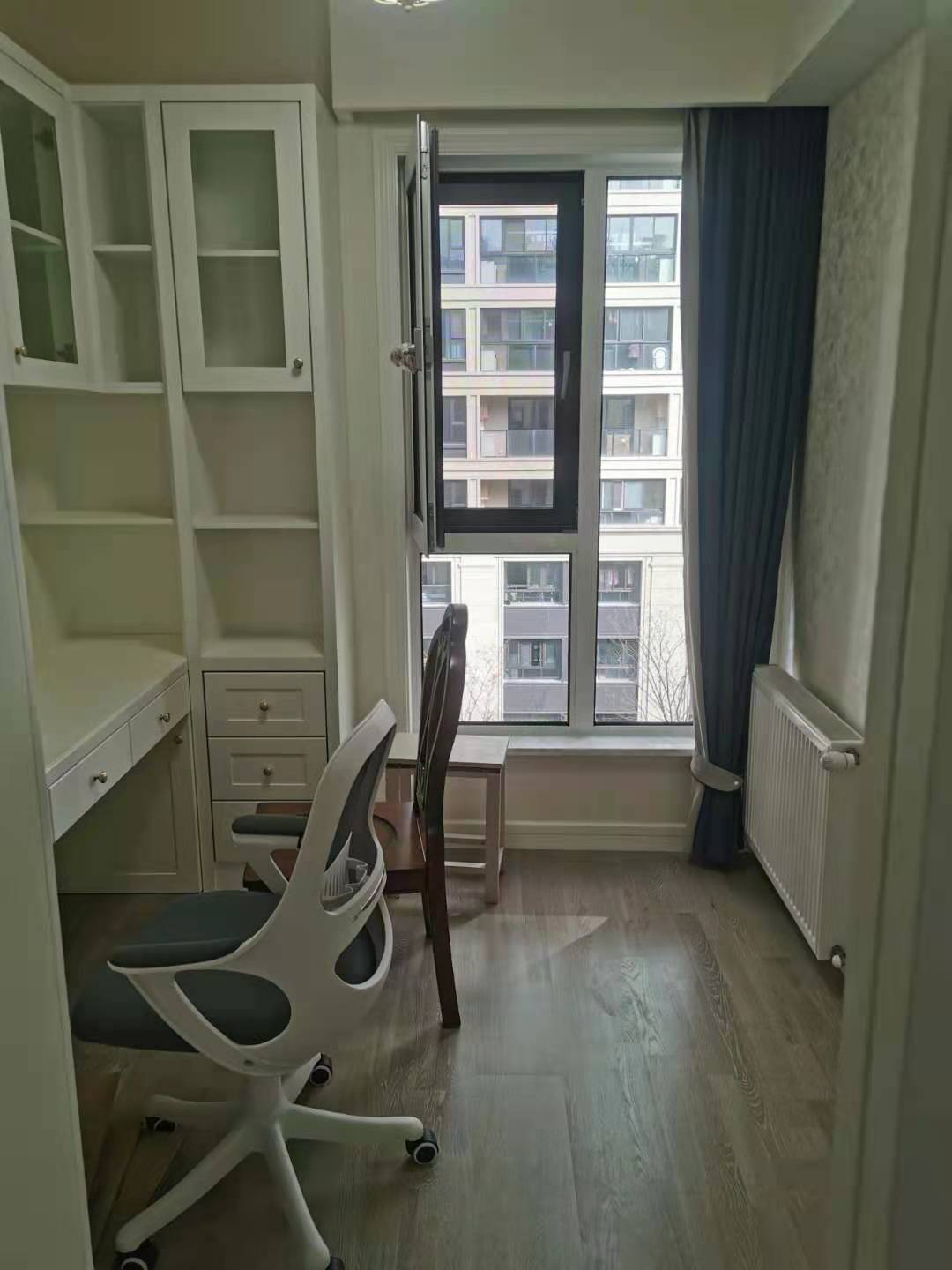 一楼北面的小房间,做书房用,木工打制的书桌实用又好看!