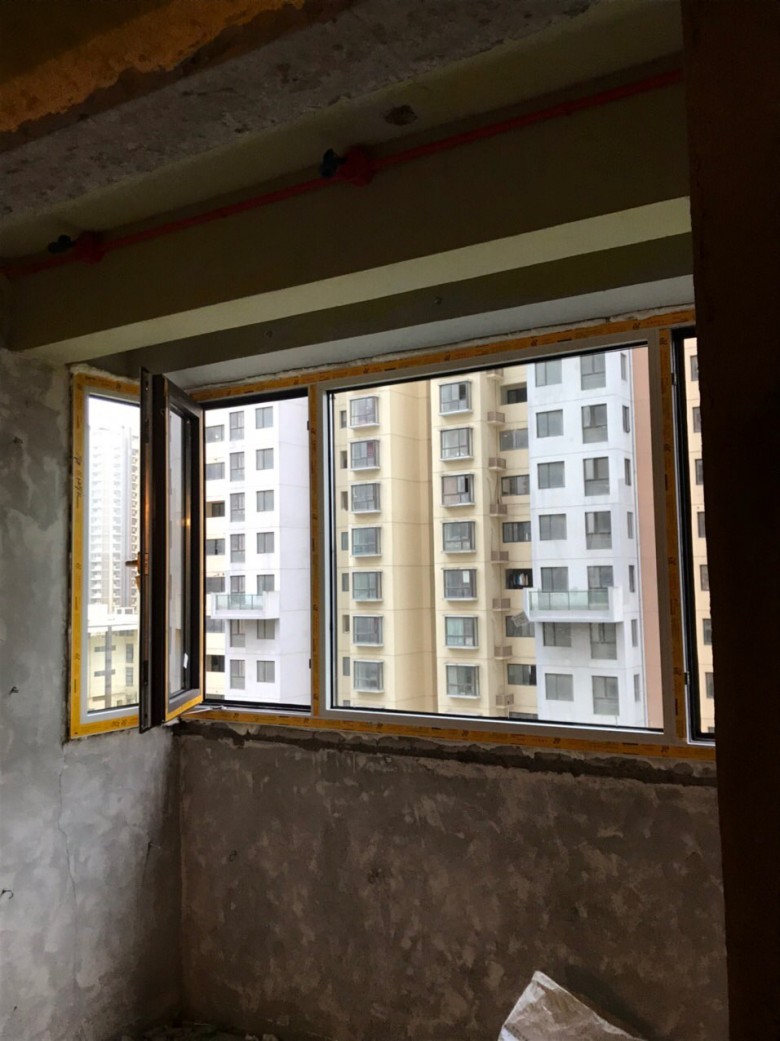 安装流程:先安装框体,过程中需要给框体定位找平,然后框体四个边边中间位置打孔用螺丝固定在墙上,固定完以后框体跟墙体之间的缝隙打满发泡胶,接下来装双层玻璃,玻璃跟框体之间的缝隙用木头铆钉(下面缝隙)或者带弹性的贴片(两边)塞进去,防止玻璃晃动,然后还有4根长条型的铝材(每扇窗4根)安装在四条边框上固定玻璃,期间五金件之类的安装,最后就是打玻璃胶了,保证密封性和防水性