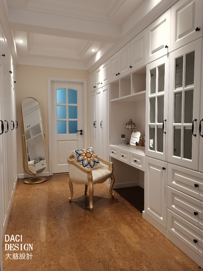 在橱柜中做了梳妆台,浴室出来就可以坐在梳妆台前护理皮肤。