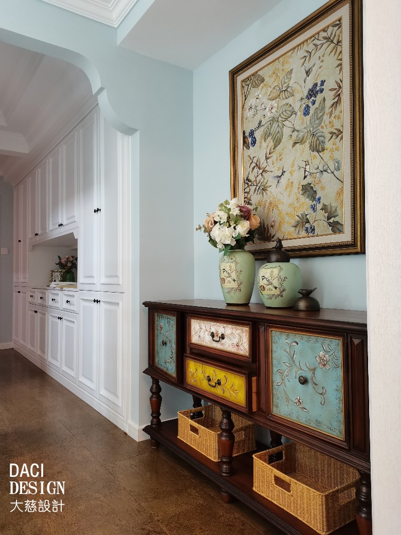 美式风格装修给人的第一印象就是自然、惬意,壁画也不例外,选用了花卉图案。