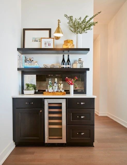 也可以设置隔板+小吧台的组合,再搭配几个高脚凳,非常适合情侣或者单身家庭使用,在此处不仅可以饮酒畅谈,还可以解决早餐或者来个充满仪式感的下午茶,享受家居生活的舒适与惬意。