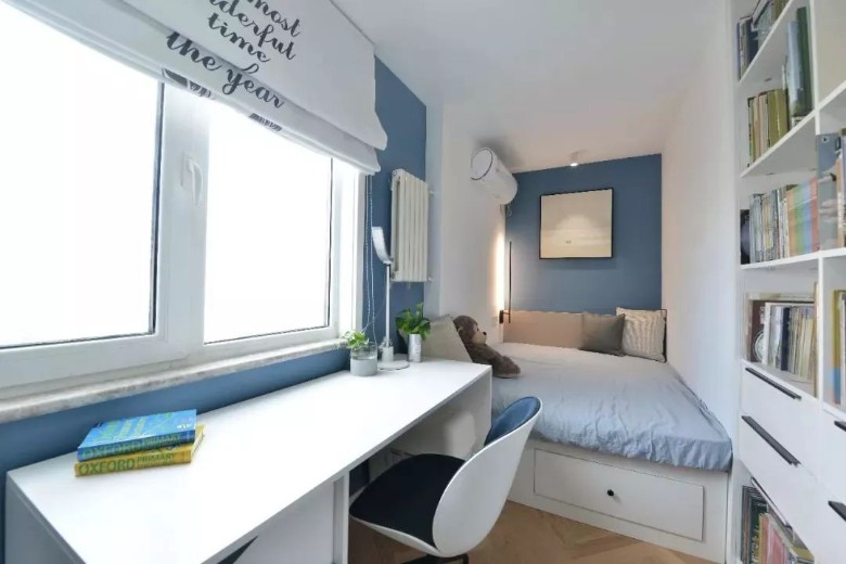 如果觉得床头上面放东西没有安全感,也可以留空。