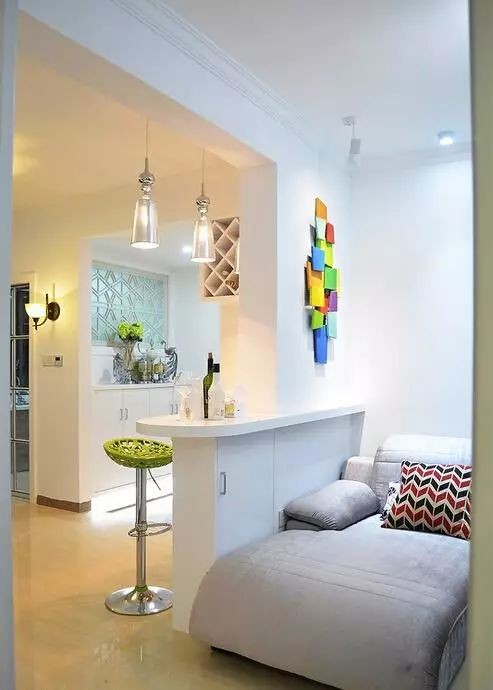建议装一个小吧台哦。无论是小户型还是大房子,小吧台可以立马改变你的家装调调,小情调就是这样装出来哒!