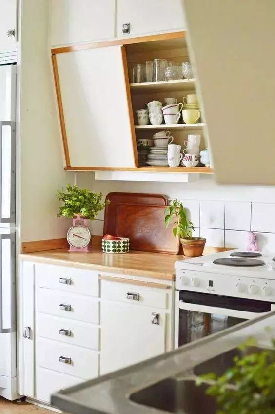 传统的厨房吊柜和整体橱柜一般都是直角的立式柜子,这样的柜子虽然存储空间足够大,但往往会遇到一个问题,就是当你正低头认真做饭时,一不留神猛地一抬头就会“碰”一下撞到头,尤其是家里层高不够或者有个子比较高的家庭成员的时候,这个安全隐患总是在无时无刻的提醒着你有多痛。