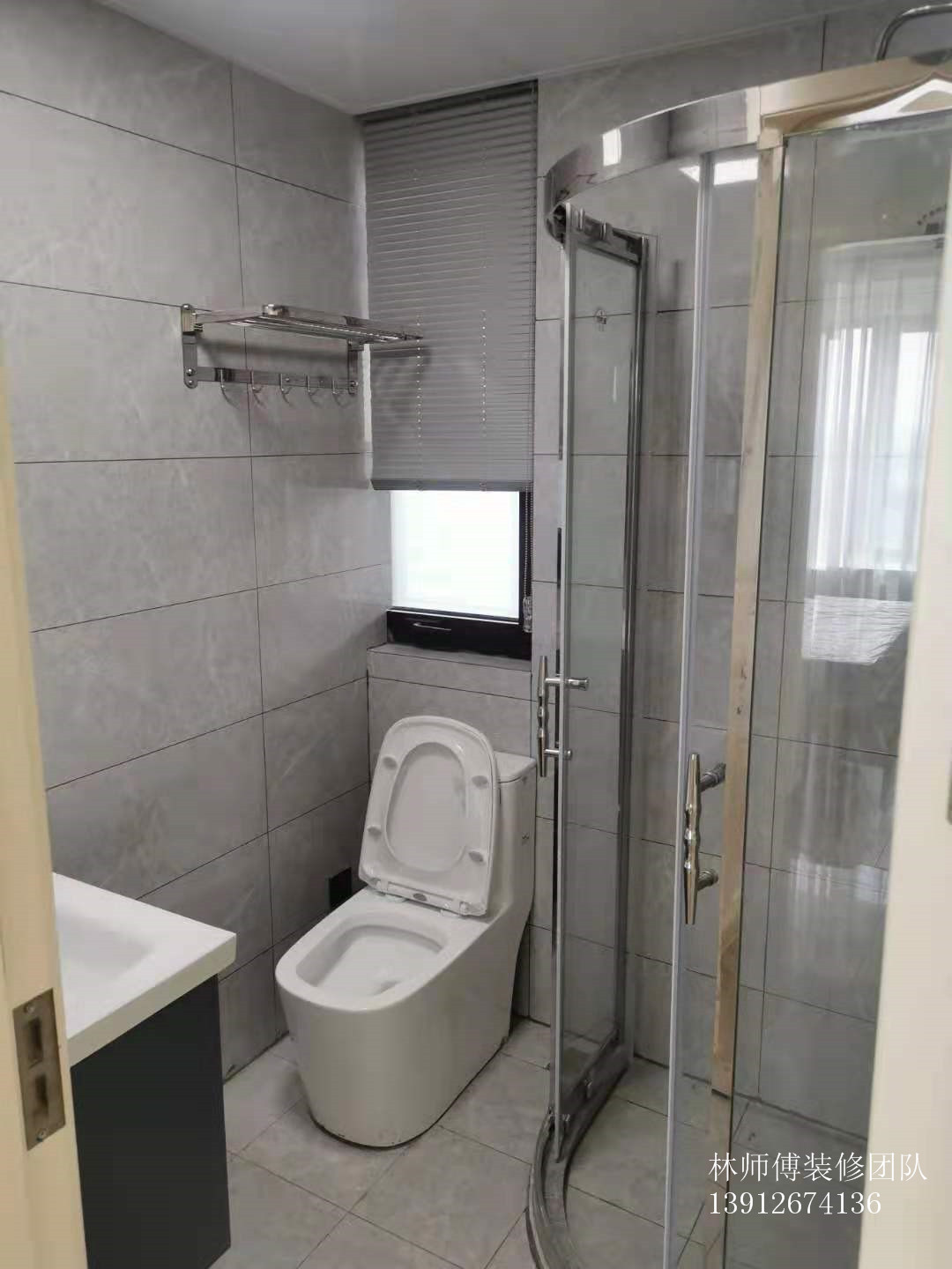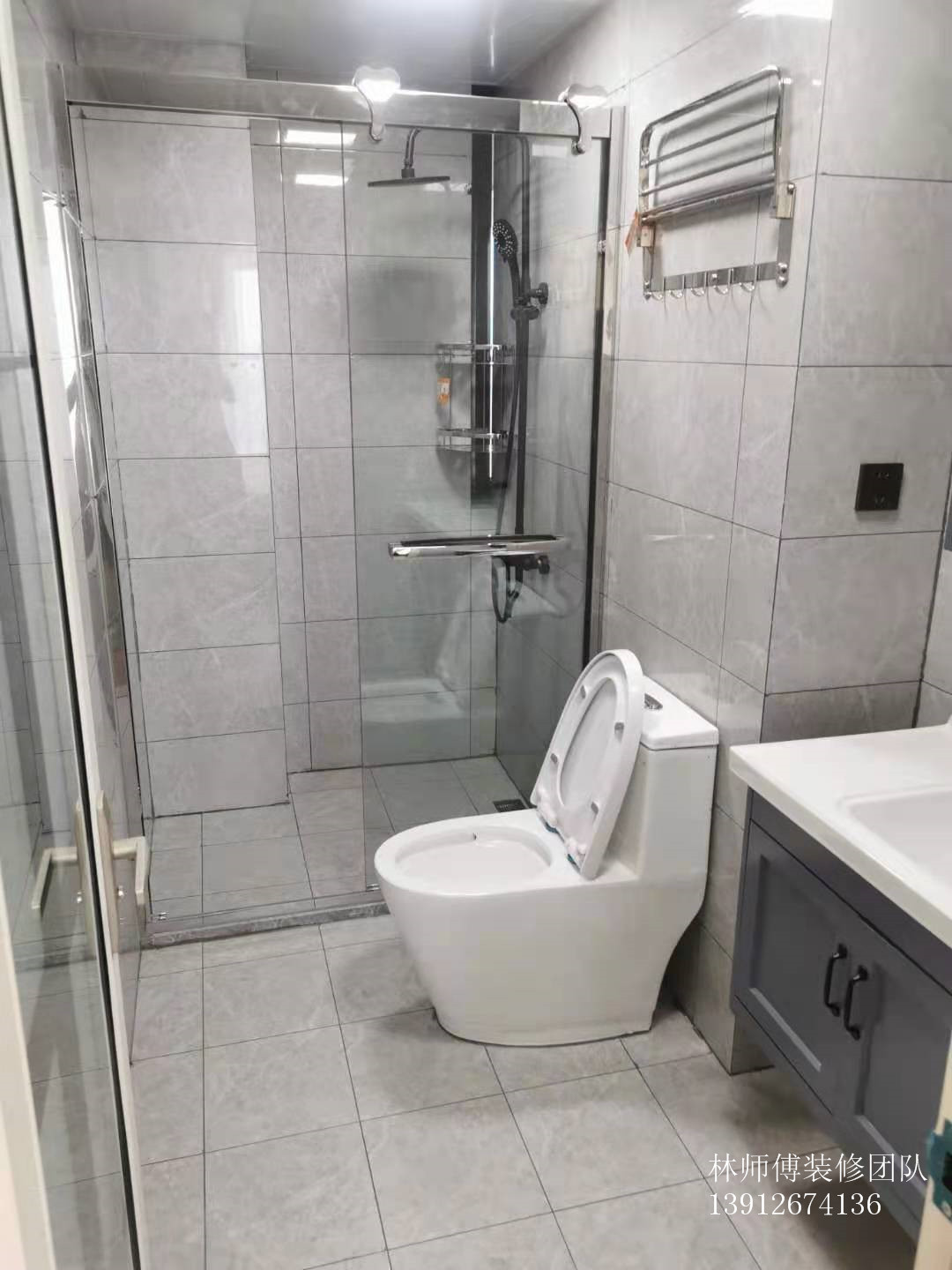 主卫,虽然改造后的卫生间面积缩小了,但是还是做了干湿分离,方便日后清洁打扫。灰色的瓷砖耐脏又美观。马桶的上方安装了折叠的毛巾架。