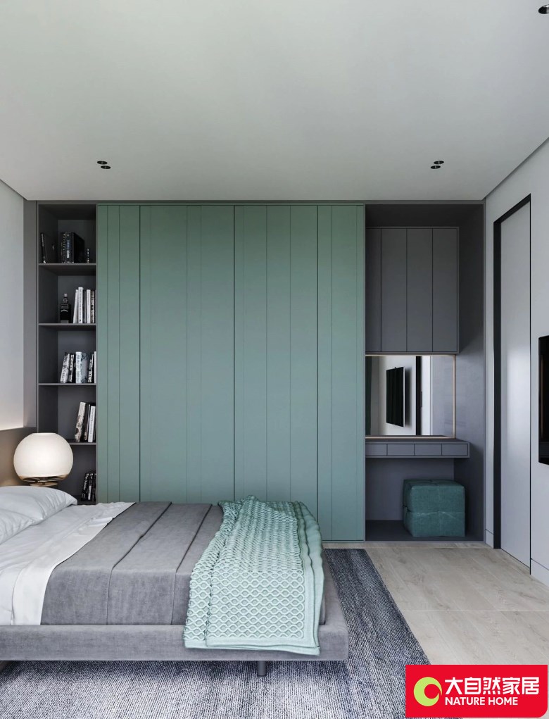 浅绿色,清新又自然,而且柜子根据平时需要定制的,实用性更佳!