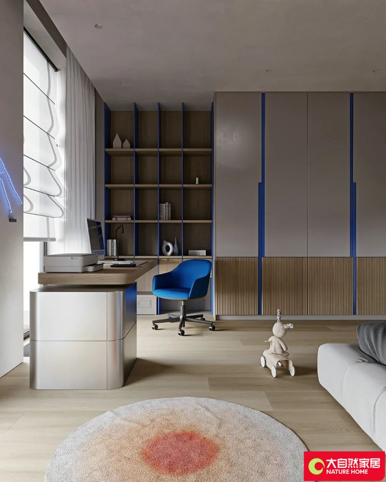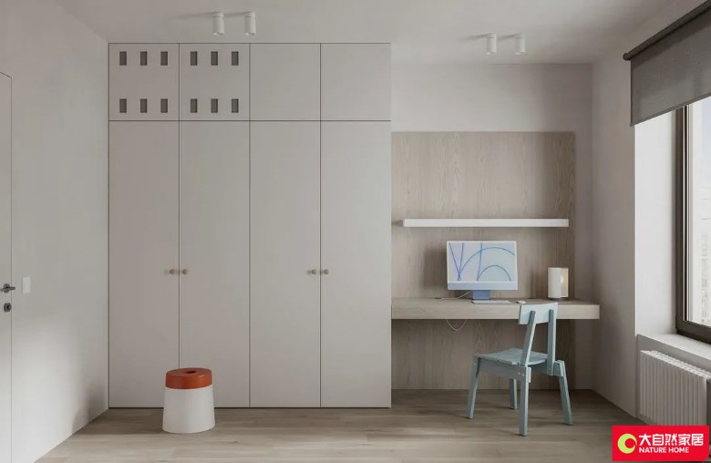 一组衣柜+书桌的组合,非常实用,书房说和儿童房都可以安排