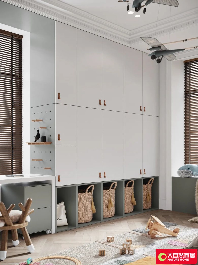 儿童房设计,橱柜+书桌,简约实用,北欧风和现代风都可以选