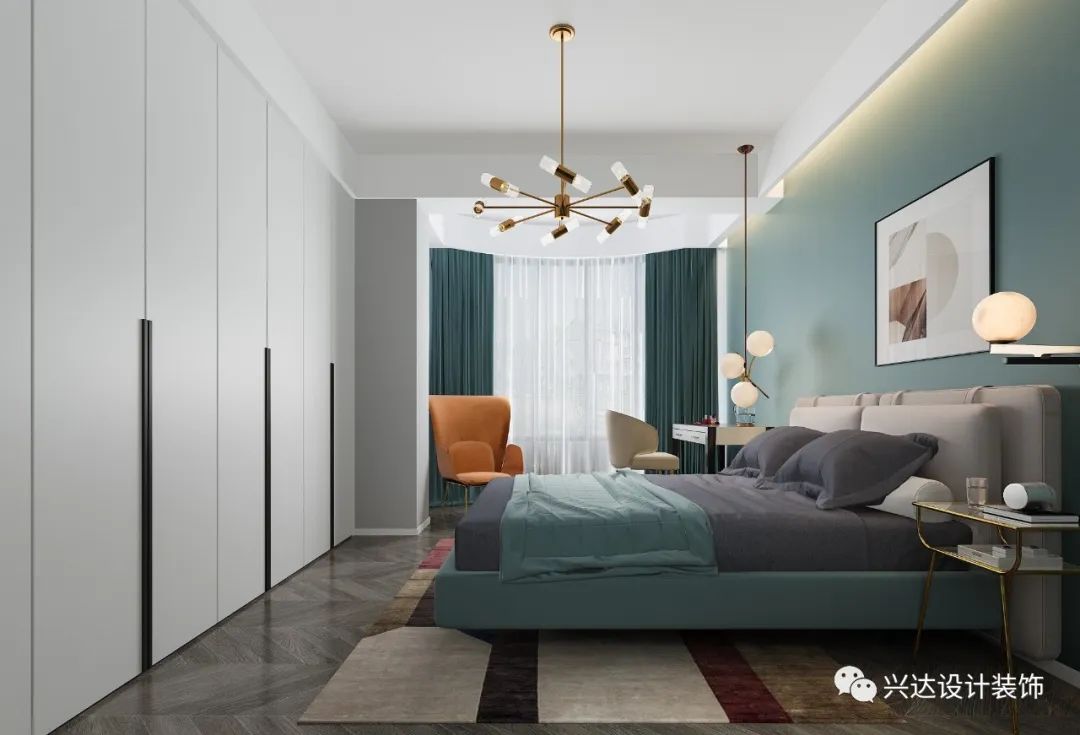 ▲卧室在淡咖色的床头墙基础,装上一个白色推门的衣柜,布置以淡咖色皮质靠背的床铺,床头两侧的床头柜与梳妆台,也让卧室显得更加实用优雅。