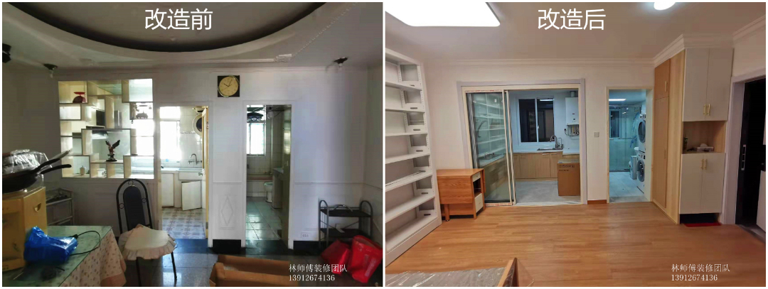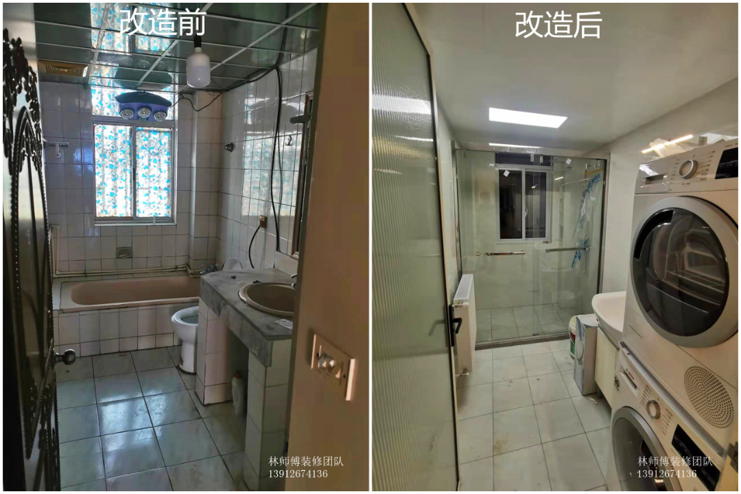 洗手间的改造,原本的洗手间干湿不分离,打扫卫生不容易,浴缸洗澡,不卫生也难清洁。改造后的卫生间,干湿分离,非常清爽。洗衣房放在卫生间,换下来的衣服能直接洗掉,更方便。