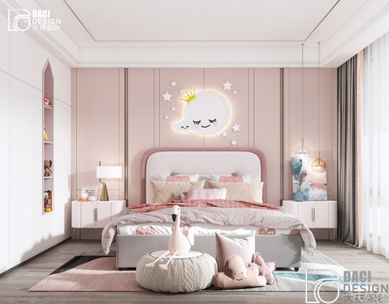 在对女生卧室进行装修时,一定主要注意色彩的运用。通常女生都比较喜欢淡紫、淡粉这类淡雅的色彩,这些色彩也更能体现出女生卧室的精美温馨。同时现在的女生大部分都喜欢那些简单清新风格的卧室在,这样的卧室在视觉上会让人感觉比较舒适。