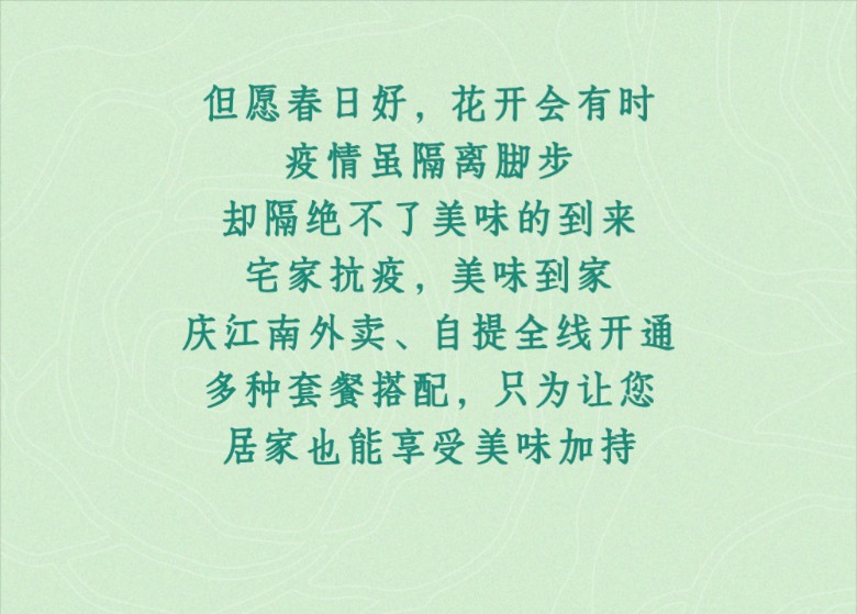 庆江南 | 请注意查收外卖、自提指南!