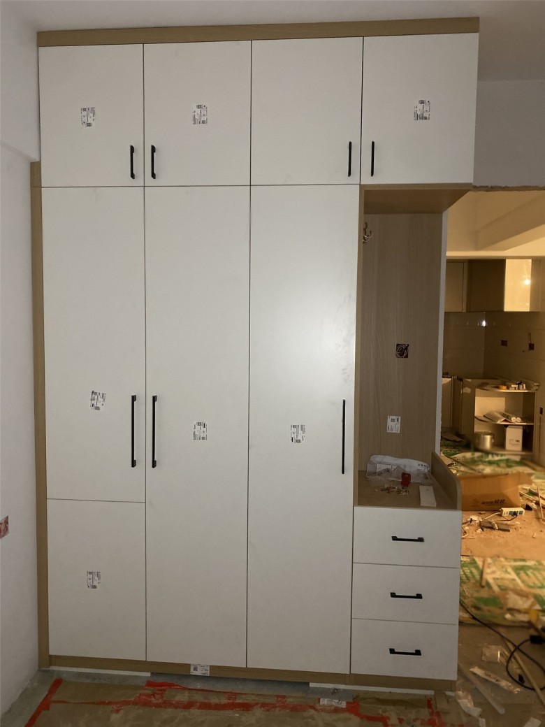 看实物,原木色和深色柜体真好看,儿童房白色目前看起来比较脏,希望清洁之后完美蜕变。