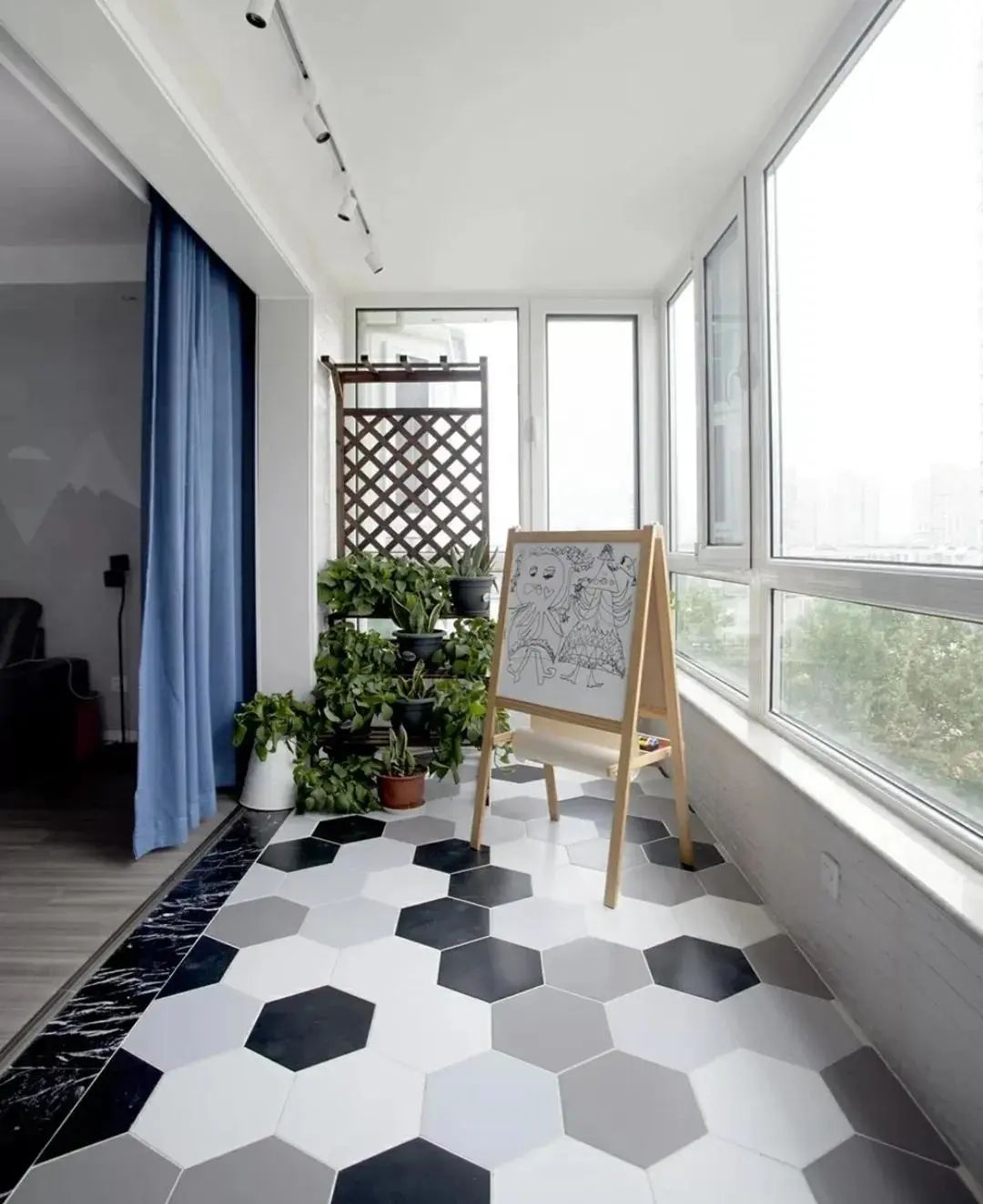 例如,可以选择相对来说比较健康环保的木地板对阳台进行铺装,如果家有小孩,也可以在阳台定制秋千,放置孩子玩具等。