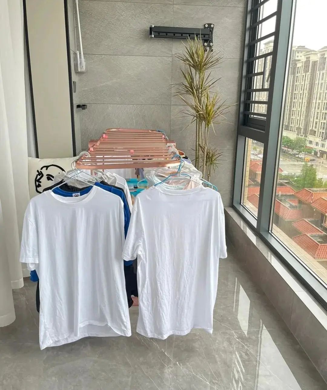 晾晒衣服是阳台最基本的功能,千万不要以为拥有了电热毛巾架和烘干机就可以放弃阳台晾晒衣服的基本功能,这是不可以的。